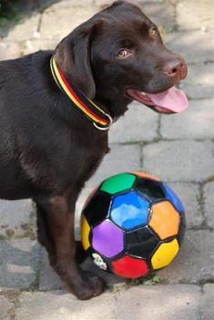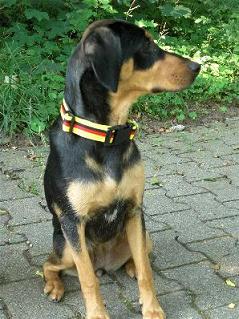 Cleo mit ihrem Sommermärchen-Halsband | Mia mit ihrem WM-Halsband |