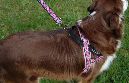 Aussie Britney mit daisy dot Geschirr + Leine | Calleigh mit zinnia Halsband in rosa |