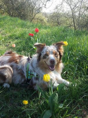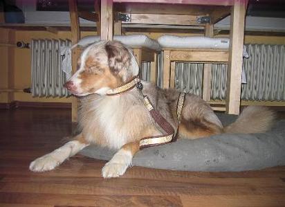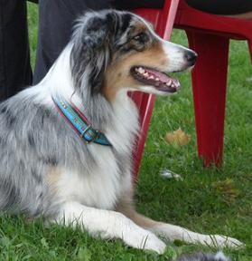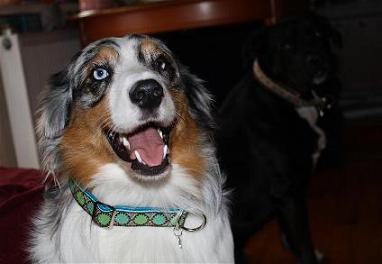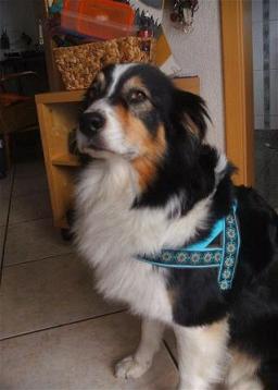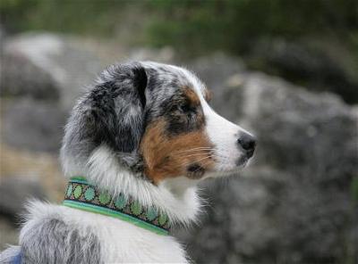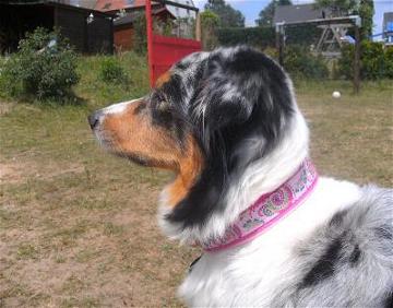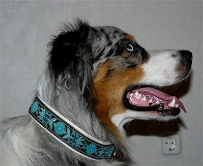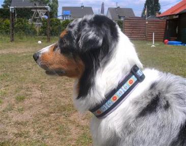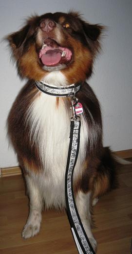 Aussie Fay mit Halsband | Aussie Jack mit besticktem Halsband (Name und Tel.) ![]() |